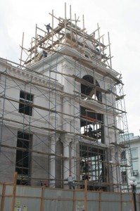 строительство Центра стоматологии. На фронтоне надпись – «Центр