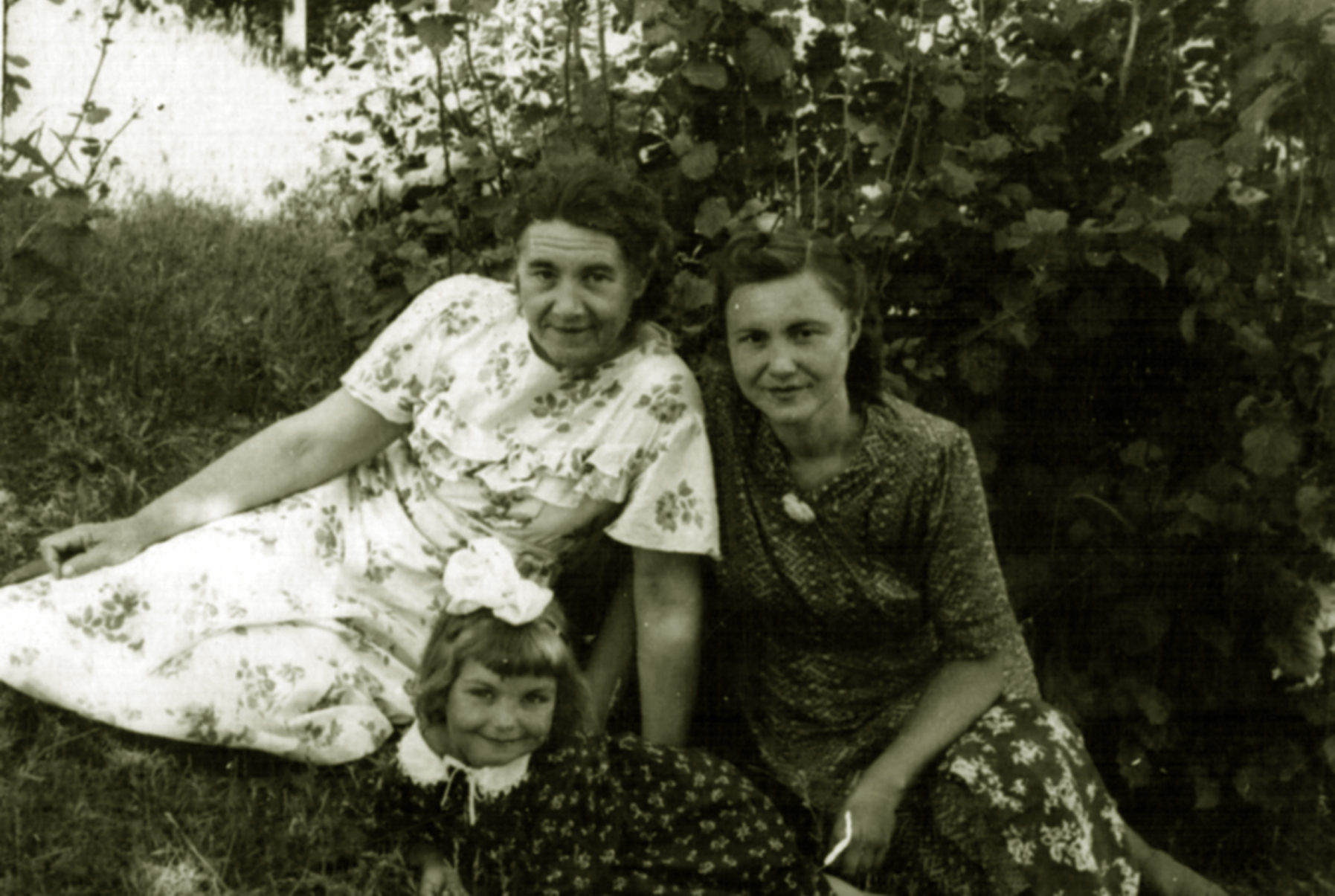 Танюша с бабушкой Екатериной Михаиловной и мамой Алевтиной Андреевной в селе Атабаево 25 августа 1957 г.