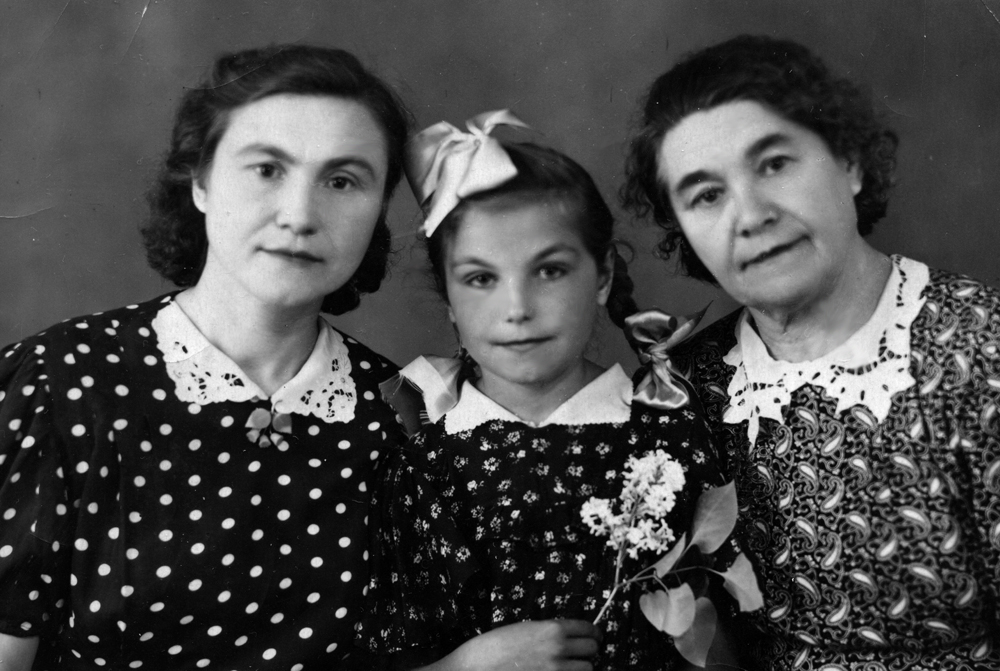 Танюша с мамой Алевтиной Андреевной и бабушкой Екатериной Михаиловной