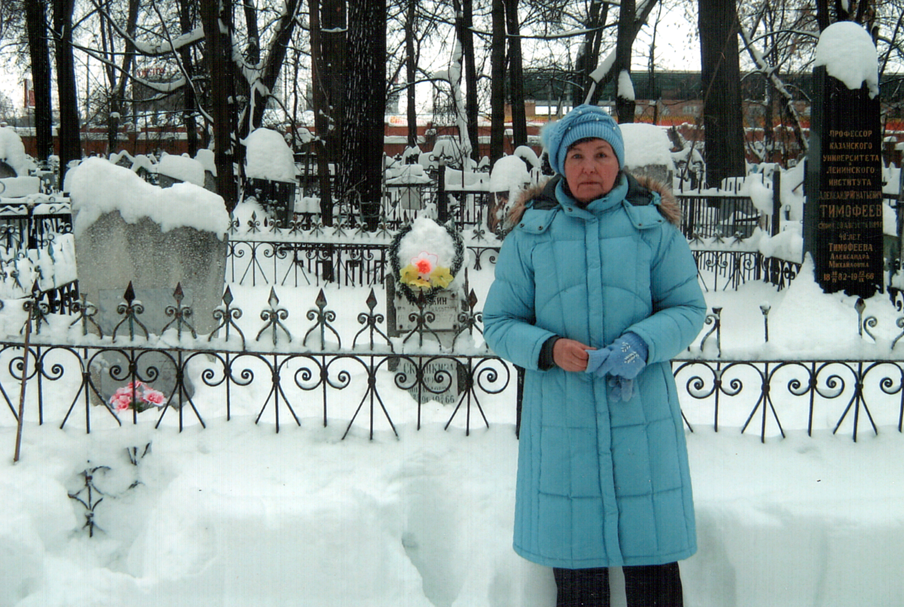 Танюша у семейного захоронения на Арском кладбище в январе 2010 г.Родная наша Танечка, ты уже тогда чувствовала приближение своего последнего дня. (Звучит погребальный звон.)